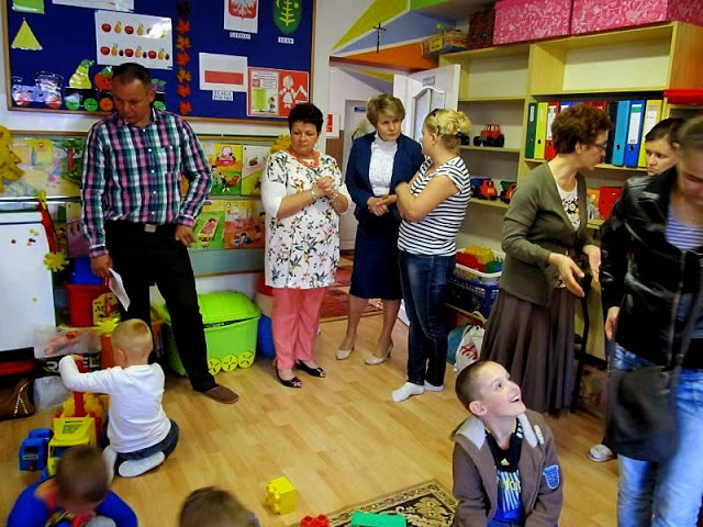 Dzieci wraz z Rodzicami zwiedziły pomieszczenia przedszkola - sale, szatnie, łazienki oraz plac zabaw. Następnie spotkały się ze swoimi Paniami. Były rozmowy, zabawy, śpiew, a nawet pierwsze prace plastyczne.