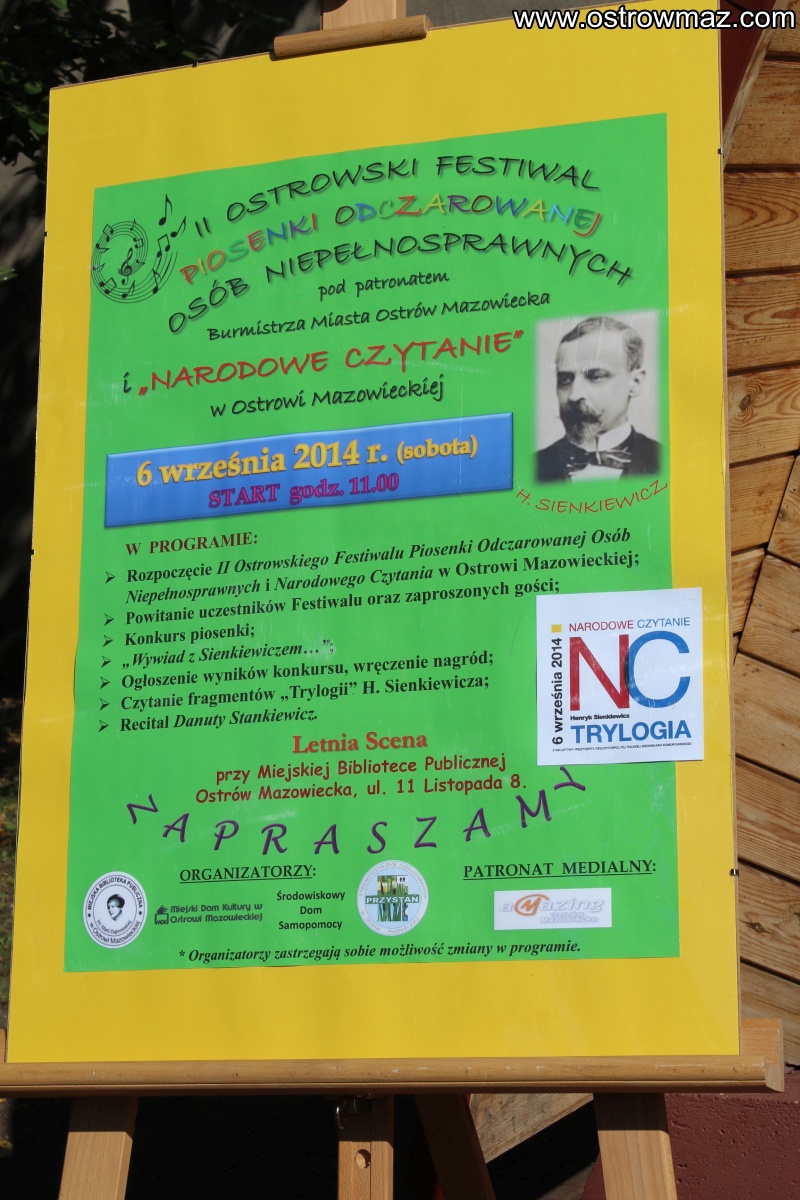 Po raz drugi osoby niepełnosprawne prezentowały się podczas festiwalu piosenek odczarowanych. Festiwal połączony był z Narodowym Czytaniem dzieł H. Sienkiewicza.