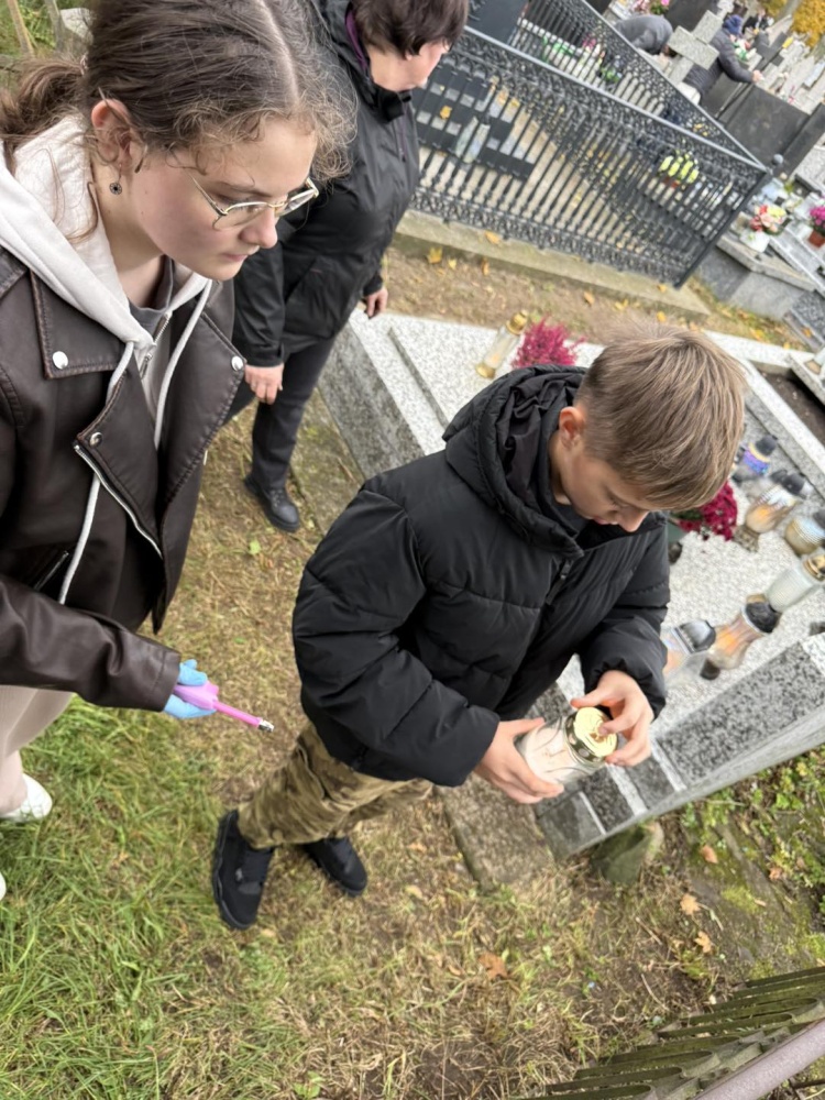 Pod opieką nauczycieli, uczniowie wzięli udział w akcji społecznej na miejscowym cmentarzu parafialnym.