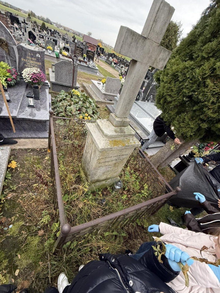 Uczniowie ZPO w Wąsewie z akcją porządkową na cmentarzu (30.10.2025) - Zdjęcie 9/16