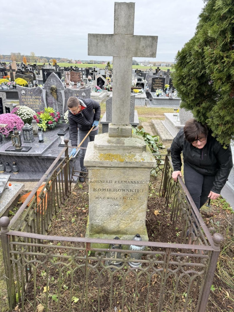 Pod opieką nauczycieli, uczniowie wzięli udział w akcji społecznej na miejscowym cmentarzu parafialnym.
