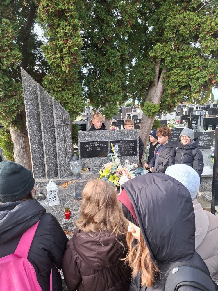 Uczniowie odwiedzili miejscowy cmentarz. Celem wizyty było zapalenie zniczy na grobach żołnierzy oraz zmarłych nauczycieli - tych, którzy przez lata służyli społeczności szkolnej i lokalnej swoją wiedzą, pasją i poświęceniem.