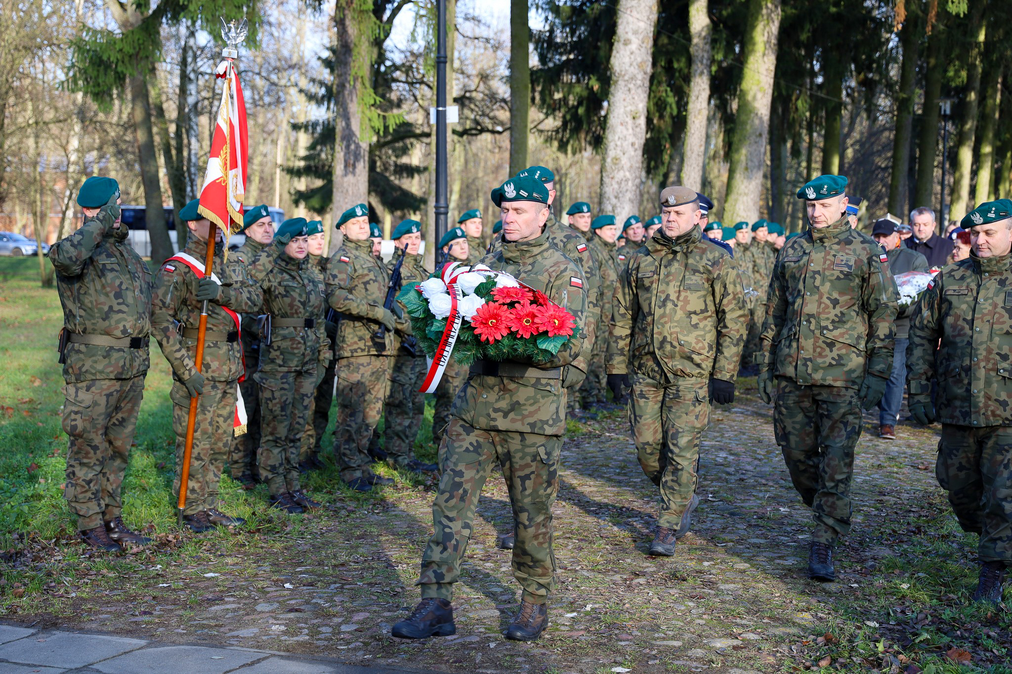 Delegacje władz Ostrowi Mazowieckiej i gminy Ostrów Mazowiecka, żołnierze, uczniowie oraz mieszkańcy spotkali się w Alei Pomników Bohaterów Powstania Listopadowego w Komorowie, by uczcić 195. rocznicę zrywu niepodległościowego.