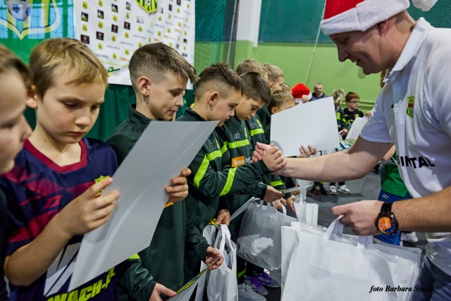 Grupy dziecięce i młodzieżowe, dziewczęce i chłopięce, Ostrovii Ostrów Mazowiecka spotkały się na Mikołajkach, łącząc piłkarską pasję ze świąteczną atmosferą.