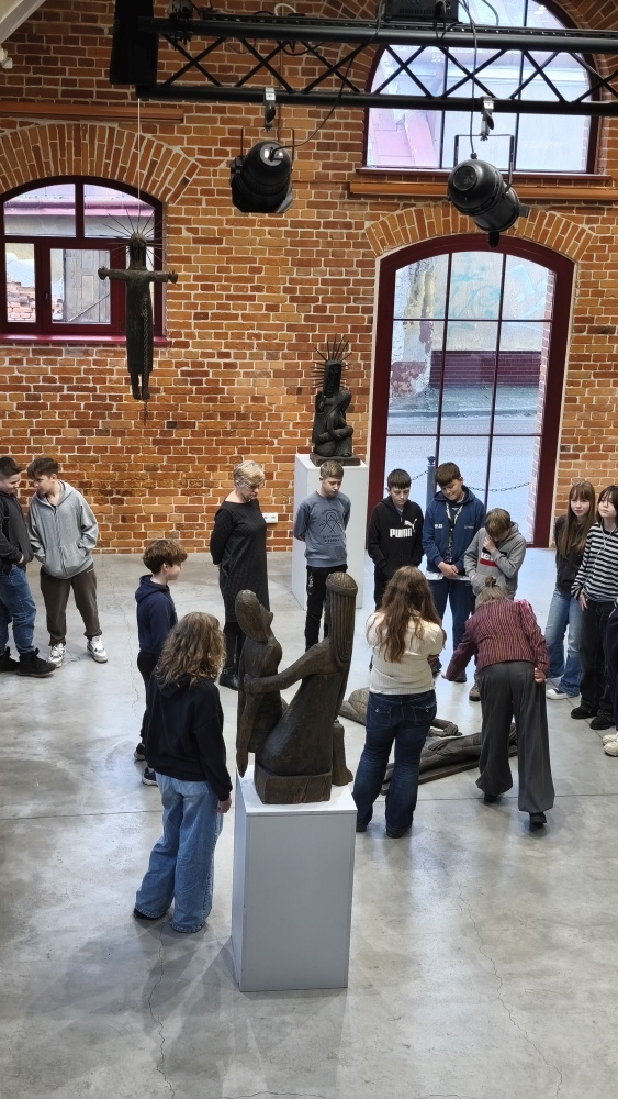 Oprowadzanie kuratorskie Magdy Rząsy po wystawie "Rząsa. Antoni - rzeźba. Halina - fotografia" okazało się dla uczniów Zespołu Szkolno-Przedszkolnego w Ostrowi Mazowieckiej niezwykłą lekcją sztuki i wrażliwości. W Galerii Jatki młodzi odbiorcy poznali nie tylko rzeźby i fotografie wybitnej zakopiańskiej rodziny artystów, lecz także ich historię, emocje i sposób patrzenia na świat, który do dziś inspiruje kolejne pokolenia.
