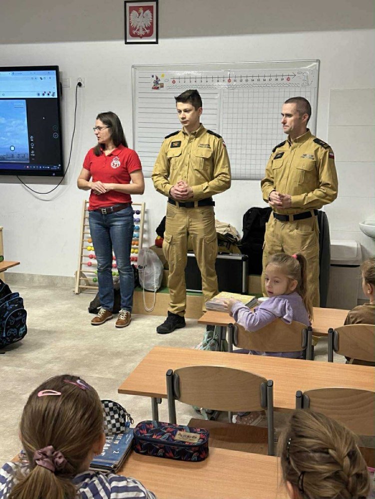 Jak zachować się w sytuacji zagrożenia i jak pomóc innym? Odpowiedzi na te pytania poznali uczniowie klasy IB podczas wyjątkowego spotkania z przedstawicielami Państwowej Straży Pożarnej. Zajęcia, które odbyły się 12 grudnia w Zespole Szkolno-Przedszkolnym w Ostrowi Mazowieckiej, połączyły teorię z praktyką, ucząc dzieci zasad bezpieczeństwa pożarowego oraz udzielania pierwszej pomocy.