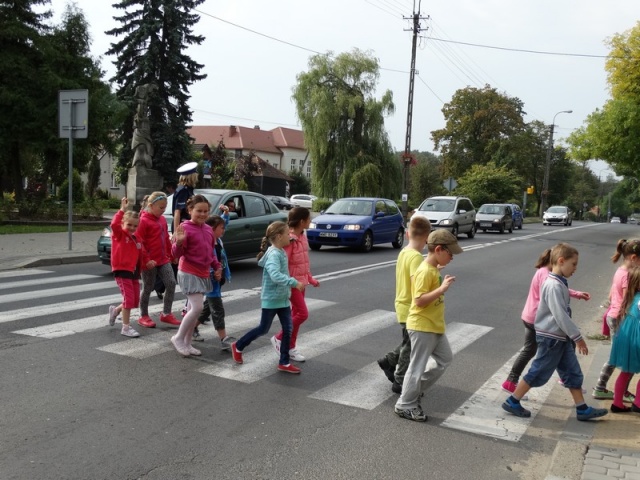 Zajęcia edukacyjne, jakie zorganizowali policjanci miały charakter praktyczny. Dzieci wraz z uwielbianą przez nie maskotką - "Liskiem" - uczyły się przechodzić przez jezdnię.