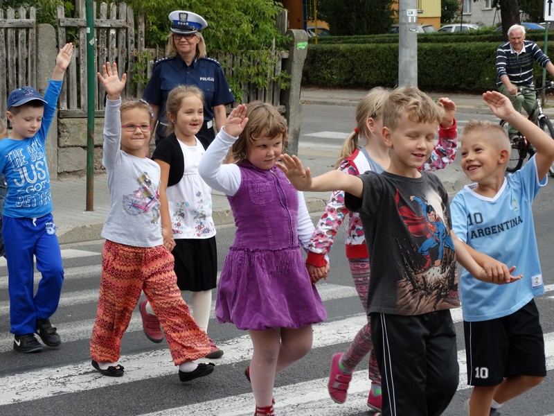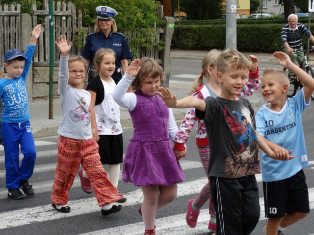 Zajęcia edukacyjne, jakie zorganizowali policjanci miały charakter praktyczny. Dzieci wraz z uwielbianą przez nie maskotką - "Liskiem" - uczyły się przechodzić przez jezdnię.