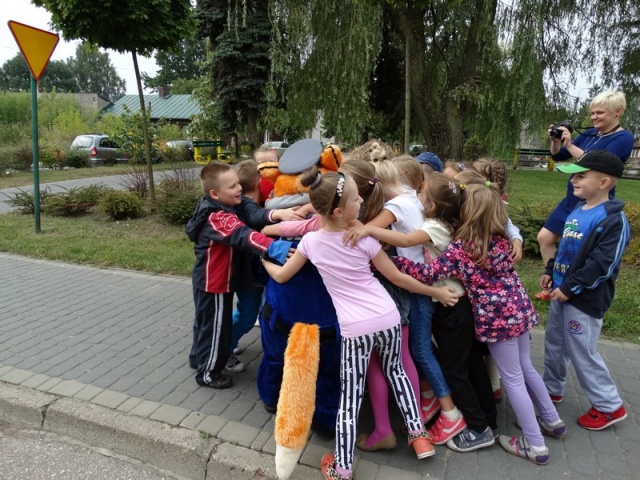 Zajęcia edukacyjne, jakie zorganizowali policjanci miały charakter praktyczny. Dzieci wraz z uwielbianą przez nie maskotką - "Liskiem" - uczyły się przechodzić przez jezdnię.