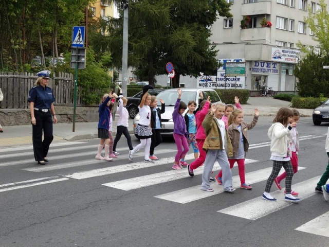 Zajęcia edukacyjne, jakie zorganizowali policjanci miały charakter praktyczny. Dzieci wraz z uwielbianą przez nie maskotką - "Liskiem" - uczyły się przechodzić przez jezdnię.