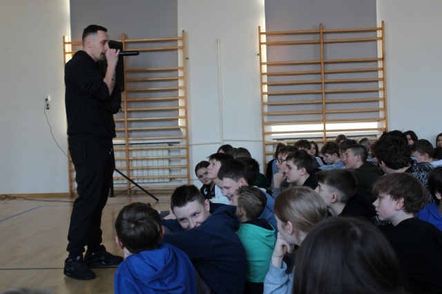 12 stycznia uczniowie klas 6?8 Zespołu Szkolno-Przedszkolnego uczestniczyli w nietypowym spotkaniu profilaktycznym, które połączyło muzykę hip-hopową z ważnym życiowym przesłaniem. Gośćmi szkoły byli Rymcerze ? Bęsiu i DJ Yonas ? artyści znani z ogólnopolskiego projektu ?Nie Zmarnuj Swojego Życia?. W rytmie rapu, z humorem i szczerością, zachęcali młodych ludzi do refleksji nad własnymi wyborami i odpowiedzialnym budowaniem swojej przyszłości.