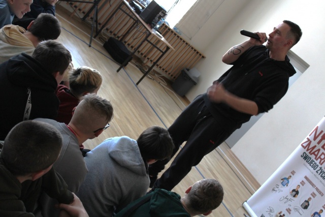 12 stycznia uczniowie klas 6?8 Zespołu Szkolno-Przedszkolnego uczestniczyli w nietypowym spotkaniu profilaktycznym, które połączyło muzykę hip-hopową z ważnym życiowym przesłaniem. Gośćmi szkoły byli Rymcerze ? Bęsiu i DJ Yonas ? artyści znani z ogólnopolskiego projektu ?Nie Zmarnuj Swojego Życia?. W rytmie rapu, z humorem i szczerością, zachęcali młodych ludzi do refleksji nad własnymi wyborami i odpowiedzialnym budowaniem swojej przyszłości.