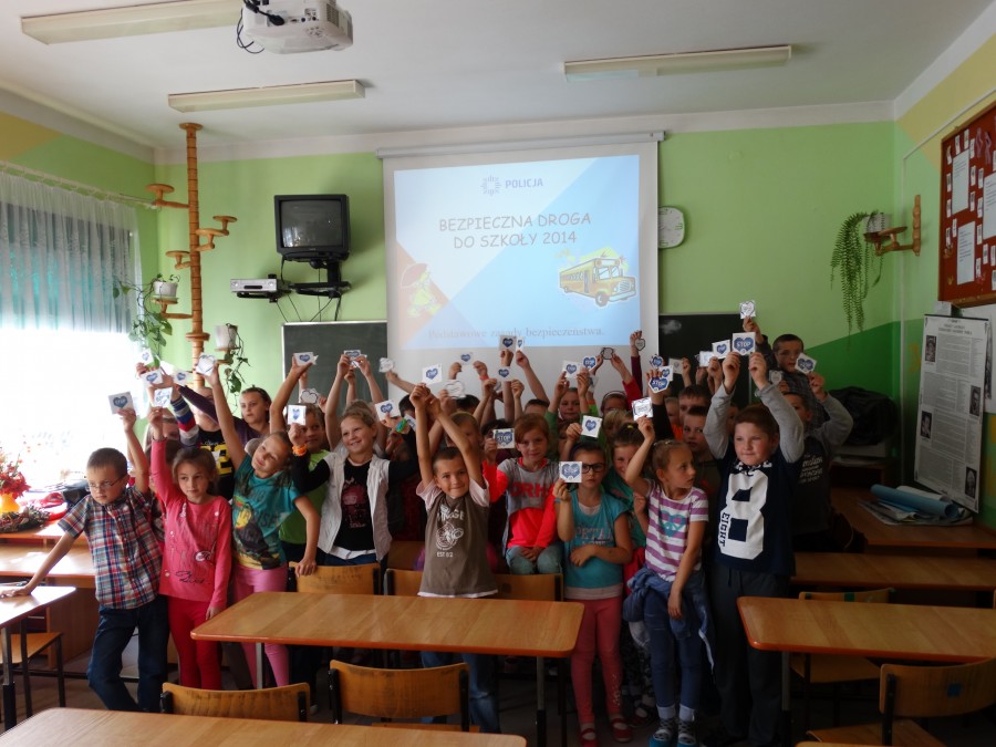 Bezpieczeństwo w trakcie drogi do szkoły było tematem spotkania uczniów klas 1-3 oraz przedszkolaków z policjantem Zespołu ds. Nieletnich.