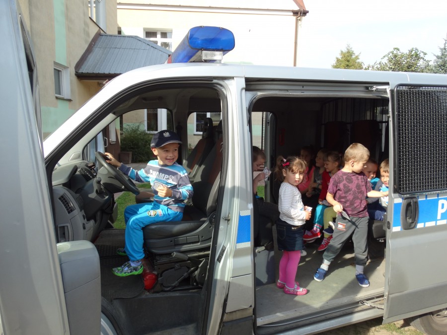 Bezpieczeństwo w trakcie drogi do szkoły było tematem spotkania uczniów klas 1-3 oraz przedszkolaków z policjantem Zespołu ds. Nieletnich.