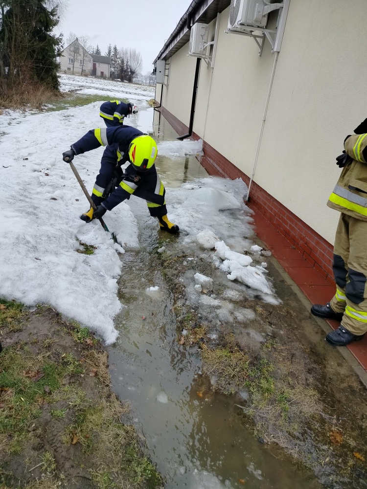 Poniedziałkowy poranek 23 lutego 2026 roku okazał się wyjątkowo intensywny dla druhów z OSP Andrzejewo. W ciągu niespełna dwóch godzin strażacy interweniowali przy zalanym budynku handlowym oraz pożarze sadzy w przewodzie kominowym w jednej z okolicznych miejscowości.