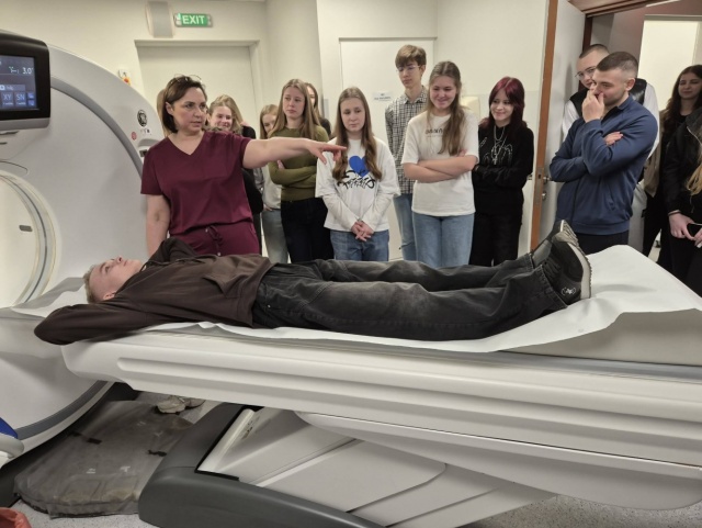 Uczniowie LO im. M. Kopernika w Ostrowi Mazowieckiej mieli niecodzienną okazję zajrzeć za kulisy pracy specjalistów diagnostyki obrazowej. Podczas wizyty w szpitalnej pracowni poznali nowoczesny sprzęt medyczny i sami spróbowali swoich sił w badaniach, które na co dzień ratują zdrowie i życie pacjentów.