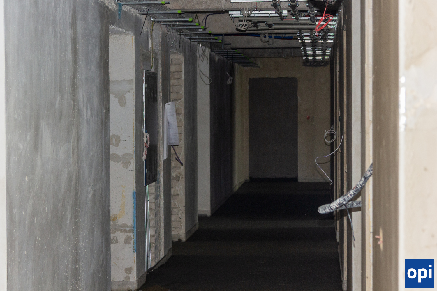 Wewnątrz budynku zakończono już tynkowanie i rozpoczęto układanie posadzek, a ekipy montują instalacje, od elektrycznych po gazów medycznych.