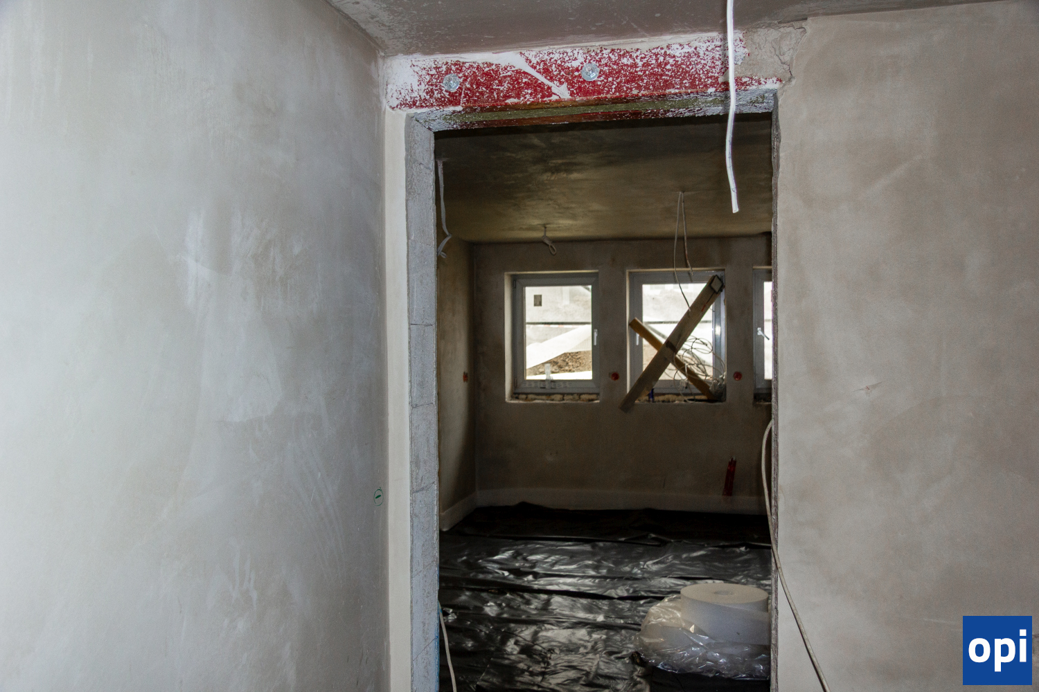 Wewnątrz budynku zakończono już tynkowanie i rozpoczęto układanie posadzek, a ekipy montują instalacje, od elektrycznych po gazów medycznych.