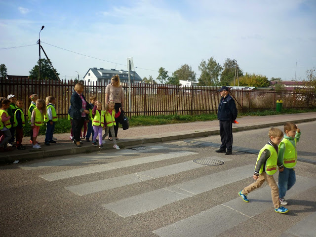 Celem spotkania było wyjaśnienie i przybliżenie dzieciom podstawowych zasad o ruchu drogowym: jak bezpiecznie przechodzić przez jezdnię, jak zachować się w pobliżu jezdni idąc chodnikiem, a jak korzystać z poboczy jezdni, na których chodnika nie ma.