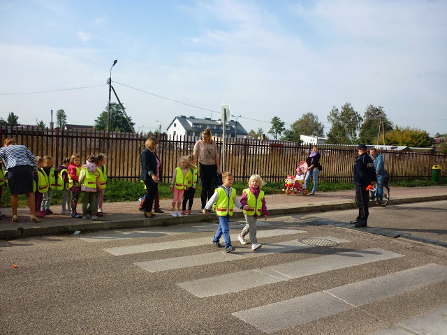 Celem spotkania było wyjaśnienie i przybliżenie dzieciom podstawowych zasad o ruchu drogowym: jak bezpiecznie przechodzić przez jezdnię, jak zachować się w pobliżu jezdni idąc chodnikiem, a jak korzystać z poboczy jezdni, na których chodnika nie ma.