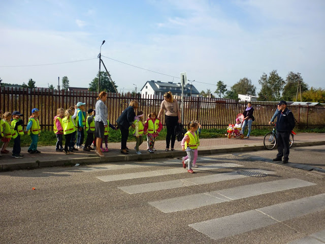 Celem spotkania było wyjaśnienie i przybliżenie dzieciom podstawowych zasad o ruchu drogowym: jak bezpiecznie przechodzić przez jezdnię, jak zachować się w pobliżu jezdni idąc chodnikiem, a jak korzystać z poboczy jezdni, na których chodnika nie ma.