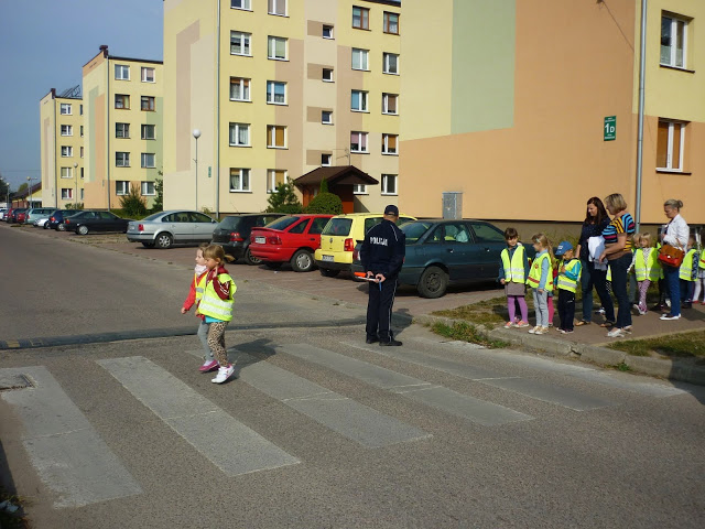 Celem spotkania było wyjaśnienie i przybliżenie dzieciom podstawowych zasad o ruchu drogowym: jak bezpiecznie przechodzić przez jezdnię, jak zachować się w pobliżu jezdni idąc chodnikiem, a jak korzystać z poboczy jezdni, na których chodnika nie ma.