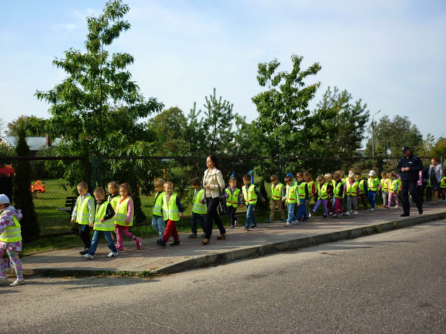 Celem spotkania było wyjaśnienie i przybliżenie dzieciom podstawowych zasad o ruchu drogowym: jak bezpiecznie przechodzić przez jezdnię, jak zachować się w pobliżu jezdni idąc chodnikiem, a jak korzystać z poboczy jezdni, na których chodnika nie ma.
