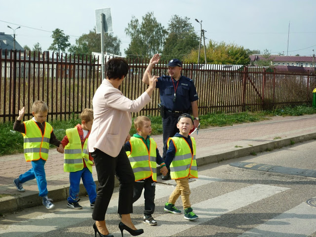Celem spotkania było wyjaśnienie i przybliżenie dzieciom podstawowych zasad o ruchu drogowym: jak bezpiecznie przechodzić przez jezdnię, jak zachować się w pobliżu jezdni idąc chodnikiem, a jak korzystać z poboczy jezdni, na których chodnika nie ma.