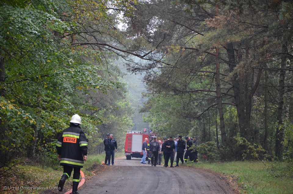 W trakcie ćwiczeń strażacy Jednostek OSP Gminy Małkinia Górna mieli za zadanie ugasić pożar w lesie, który rozprzestrzenił się w kilku miejscach stwarzając zagrożenie dla pobliskich zabudowań.