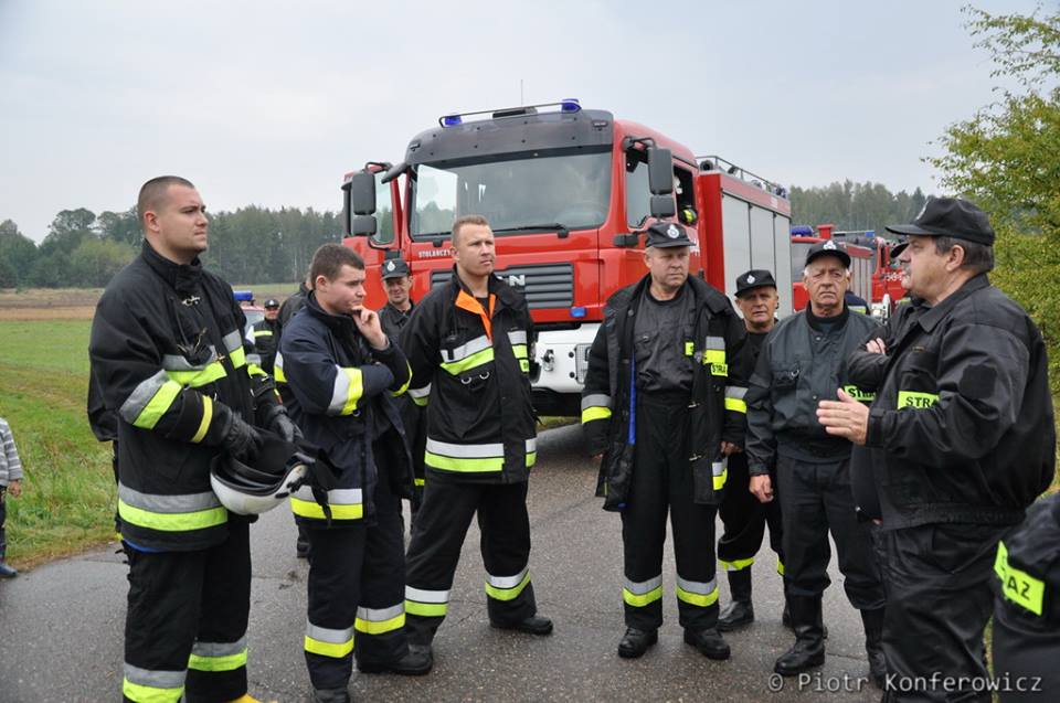 W trakcie ćwiczeń strażacy Jednostek OSP Gminy Małkinia Górna mieli za zadanie ugasić pożar w lesie, który rozprzestrzenił się w kilku miejscach stwarzając zagrożenie dla pobliskich zabudowań.