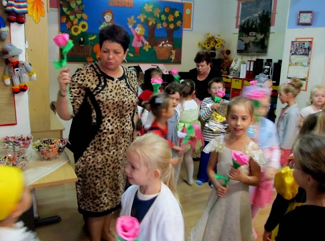 Dzieci z najstarszej grupy przygotowały piękną, bajkową część artystyczną oraz wręczyły paniom i gościom pamiątkowe krepinowe róże.