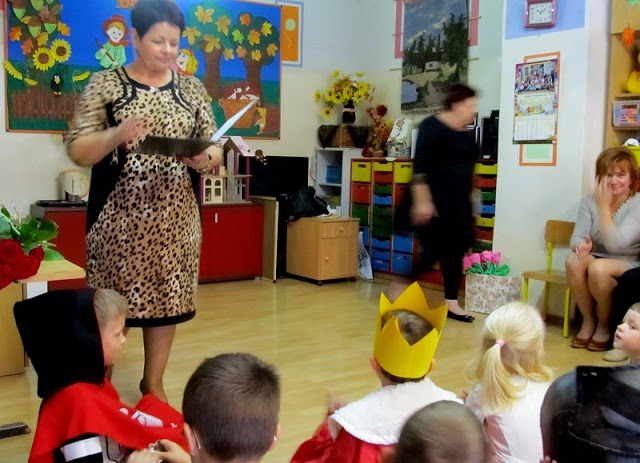 Dzieci z najstarszej grupy przygotowały piękną, bajkową część artystyczną oraz wręczyły paniom i gościom pamiątkowe krepinowe róże.