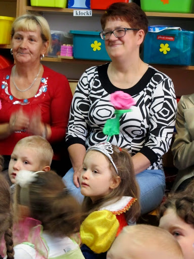 Dzieci z najstarszej grupy przygotowały piękną, bajkową część artystyczną oraz wręczyły paniom i gościom pamiątkowe krepinowe róże.