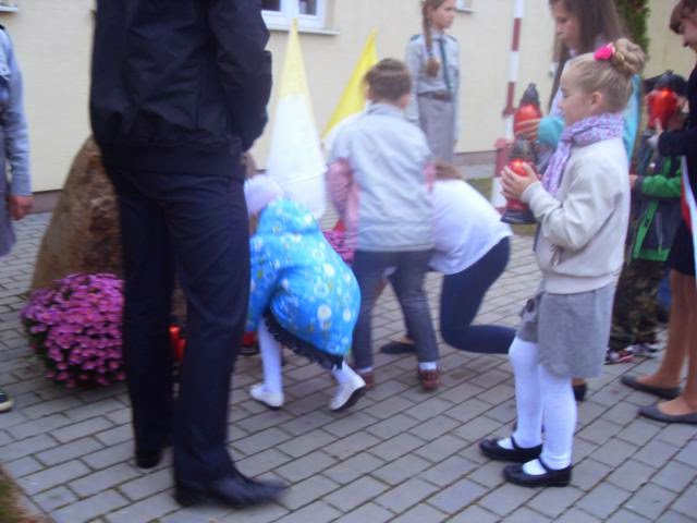 Uroczystości rozpoczęły się około godziny 8:30 przed pamiątkowym obeliskiem usytuowanym przy budynku szkoły, gdzie zgromadzeni uczniowie wraz ze swoimi wychowawcami, w obecności pocztu sztandarowego odśpiewali hymn narodowy, a następnie przedstawiciele poszczególnych klas zapalili znicze, oddając hołd Janowi Pawłowi II.