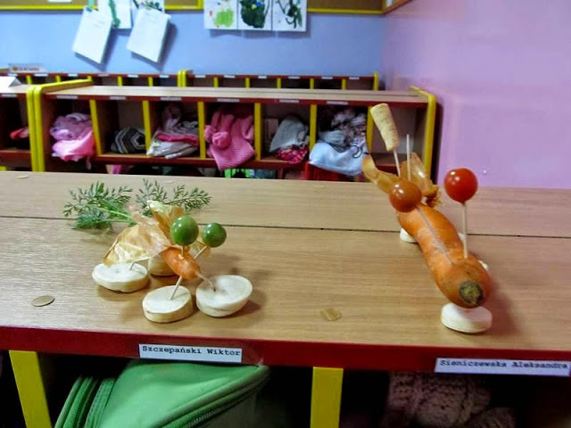 Dzieci ubrane na pomarańczowo poznawały walory zdrowotne, smakowe i estetyczne tego pięknego warzywa. Przekonały się, że marchewka doskonale smakuje na surowo, ale także w formie soku lub przecieru.