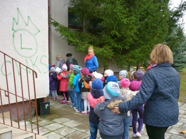 Próba ewakuacyjna w małkińskim przedszkolu (16.10.2014) - Zdjęcie 16/16