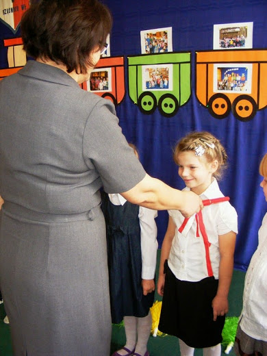 Miłą tradycją pierwszaków w dniu ślubowania jest wkopanie pamiątkowego drzewka, co też uczynili, oczywiście przy mocno grzejących dla nich promieniach słońca.