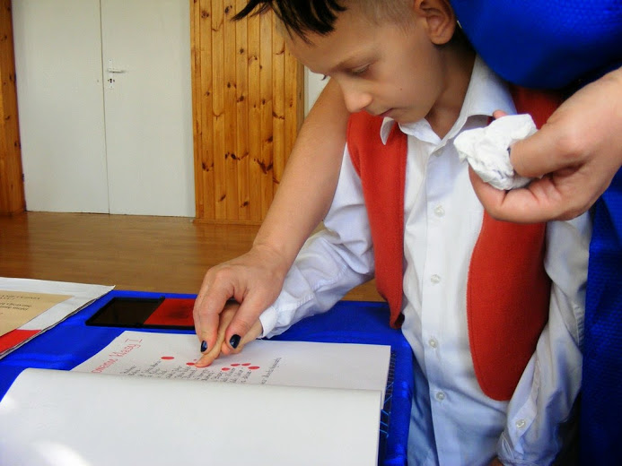 Miłą tradycją pierwszaków w dniu ślubowania jest wkopanie pamiątkowego drzewka, co też uczynili, oczywiście przy mocno grzejących dla nich promieniach słońca.