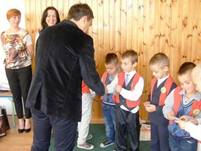 Miłą tradycją pierwszaków w dniu ślubowania jest wkopanie pamiątkowego drzewka, co też uczynili, oczywiście przy mocno grzejących dla nich promieniach słońca.