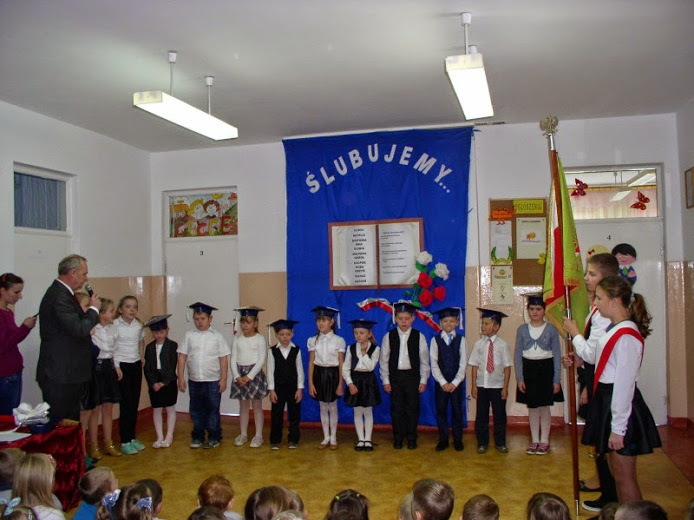 Pierwszoklasiści w obecności dyrektora szkoły Andrzeja Korosia oraz Rady Pedagogicznej i rodziców zostali oficjalnie włączeni do społeczności uczniowskiej Szkoły Podstawowej im. Kardynała Stefana Wyszyńskiego w Kiełczewie.