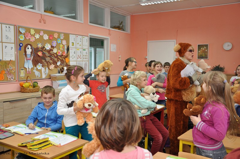 Pluszowy Miś nie zapomniał o najmłodszych uczestnikach szkolnej społeczności SP 1 i odwiedził ich 26 listopada.