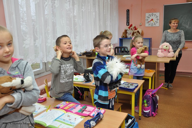 Pluszowy Miś nie zapomniał o najmłodszych uczestnikach szkolnej społeczności SP 1 i odwiedził ich 26 listopada.