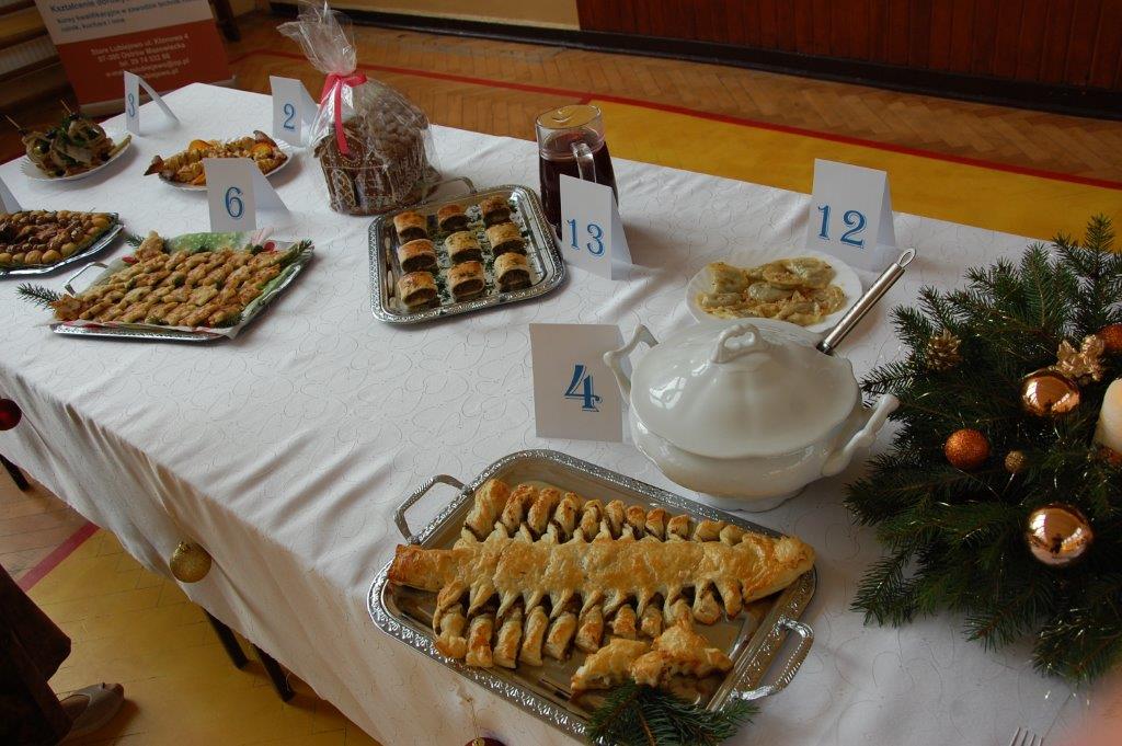 Stoły uginały się pod ciężarem zarówno tradycyjnych, jak i nowoczesnych dań wigilijnych. Królował barszcz czerwony serwowany z pierożkami, uszkami oraz pasztecikami.