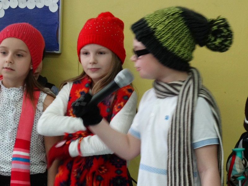 Dnia 15 stycznia uczniowie klasy I E z wychowawczynią p. Danutą Brzostek przygotowali apel dla uczniów klas I-III pt. "Bezpieczne zabawy zimowe".