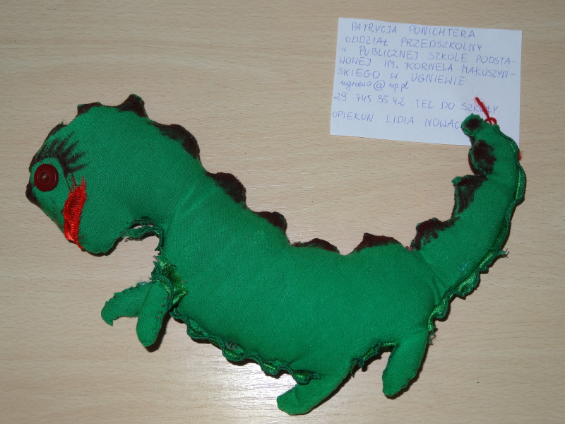 Rozstrzygnięto konkurs na kukiełkę lub maskotkę bohatera programu przedszkolnej edukacji antytytoniowej "Czyste powietrze wokół nas"pod hasłem "Mój Dinuś".