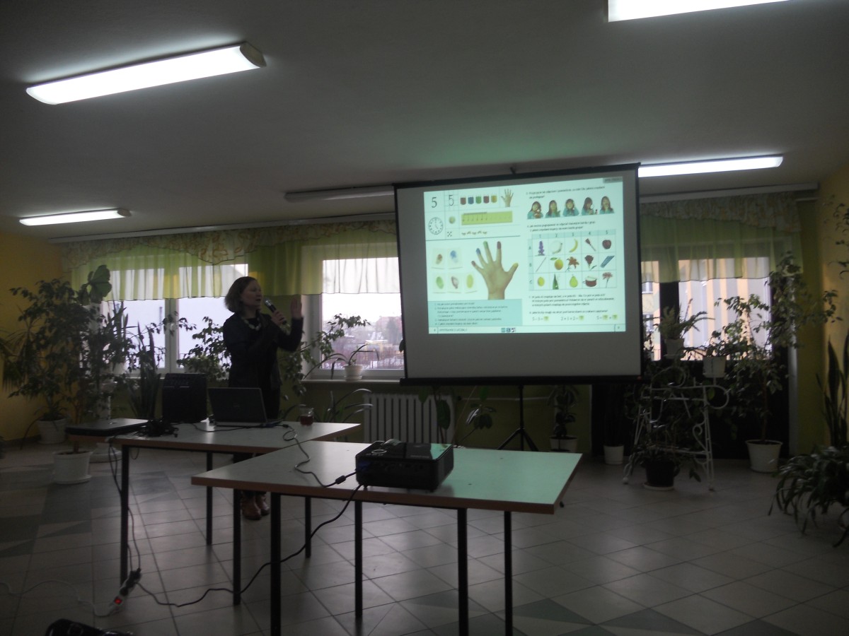 Liczna grupa nauczycieli edukacji przedszkolnej i wczesnoszkolnej, oraz specjaliści z poradni psychologiczno - pedagogicznej, wzięli udział w spotkaniu z autorką Elementarza Marią Lorek.