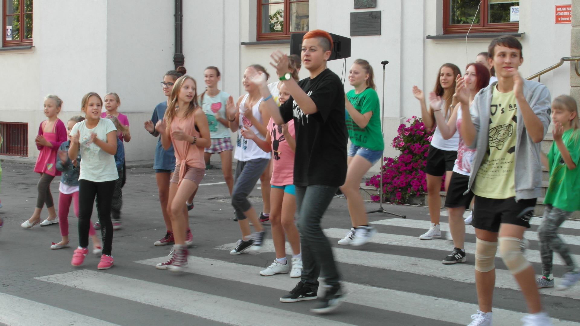 Mieszkańcy Ostrowi, którzy zebrali się na placu przy Ratuszu, wzięli udział we wspólnych tańcach. Podziwiali również, co w czasie dwudniowych warsztatów udało się przygotować ostrowskiej młodzieży.