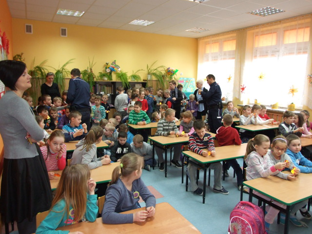 9 marca policjanci z ostrowskiej komendy policji przeprowadzili spotkanie poświęcone szeroko pojętemu bezpieczeństwu z przedszkolakami oraz uczniami klas I-III Szkoły Podstawowej w Starym Lubotyniu.