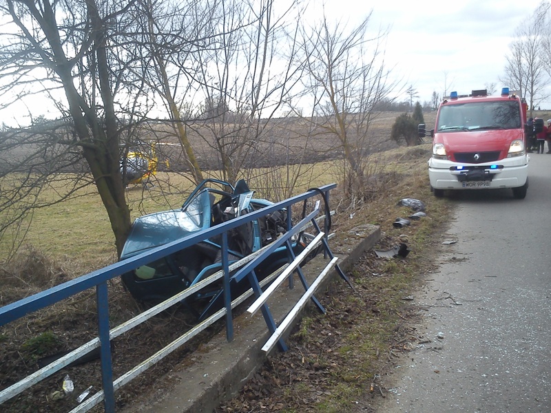 Jedna z osób poszkodowanych wydostała się z auta o własnych siłach, natomiast dwoje uczestników wypadku zostało uwięzionych we wraku.