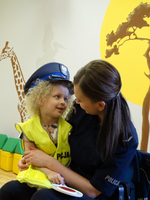 Rozmawiano o bezpieczeństwie a także o pracy i zawodzie policjanta. Dzieci mogły obejrzeć i przymierzyć niektóre elementy umundurowania funkcjonariuszy Policji, co cieszyło się dużym zainteresowaniem.
